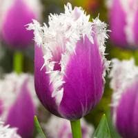 Тюльпан Камминс – это образец изящности и элегантности. Кто бы мог подумать, что из небольших неприметных луковиц может вырасти такая красота! Бутоны растения, в обхвате достигающие 10-12 см, окрашены в насыщенный фиолетово-пурпурный цвет. По краю каждого лепестка проходит белоснежная игольчатая бахрома.